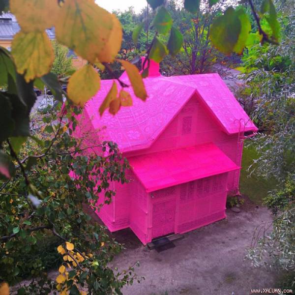 Ngôi nhà sau khi được khoác lên một lớp áo len hồng